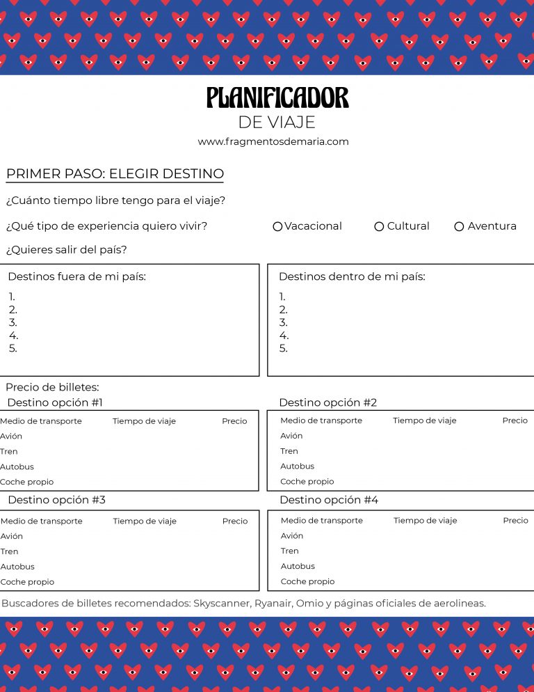 ¿Quieres planificar tu próximo viaje y no tienes idea de por dónde empezar? Aquí podrás encontrar la plantilla que utilizo siempre antes de tomar una decisión. Puedes descargar el PDF completo o solo la sección que más te interese.